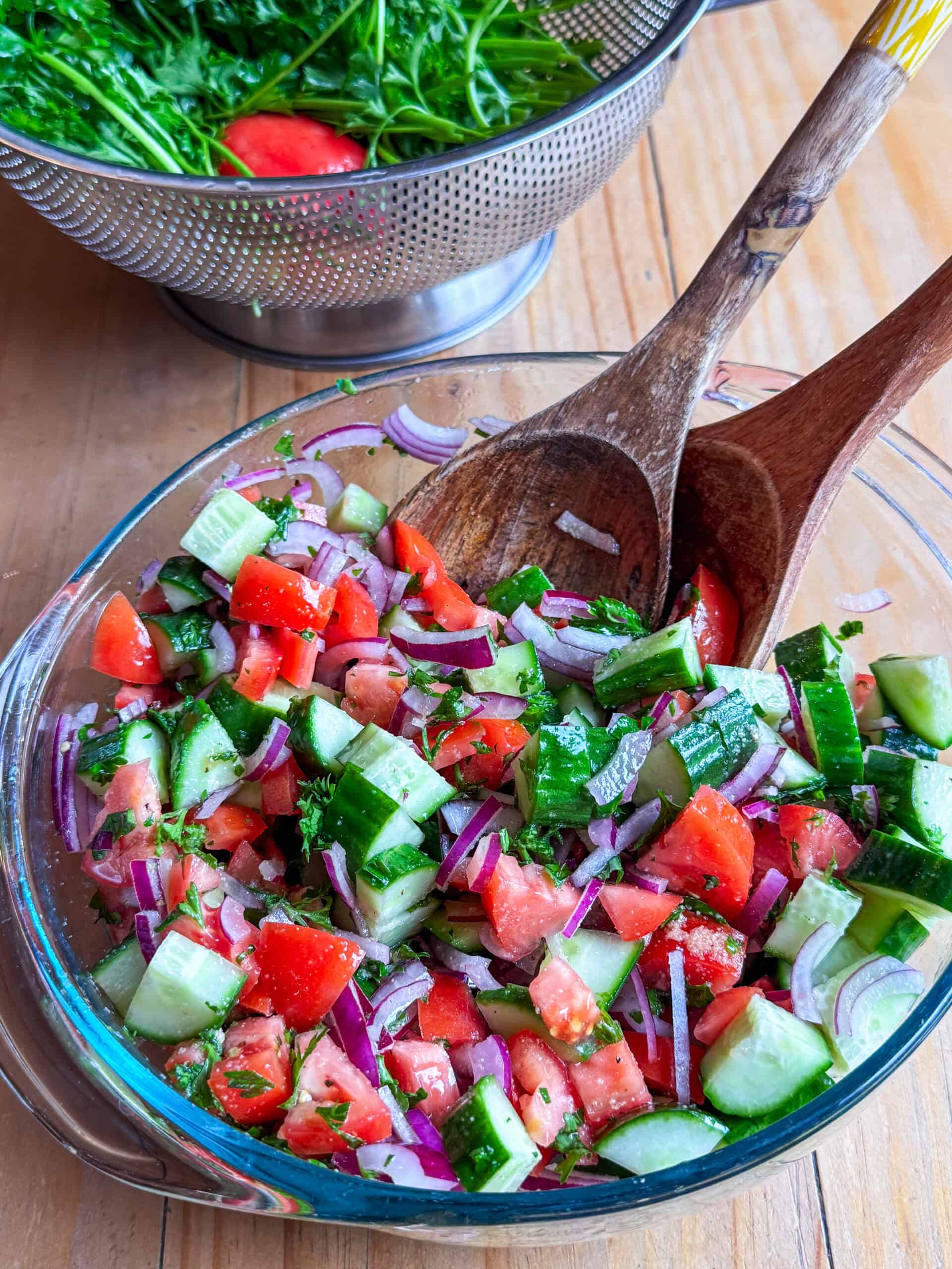 - Step 1: Chop the cucumbers, tomatoes, onion, and parsley.