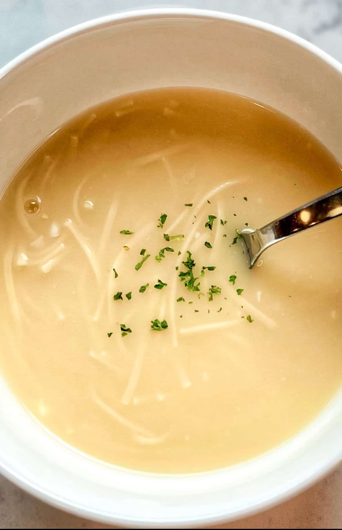 To avoid curdling, make sure to whisk constantly when adding the lemon-egg mixture and don’t let the soup boil too long after adding it. This ensures a silky, smooth texture instead of scrambled eggs in broth!